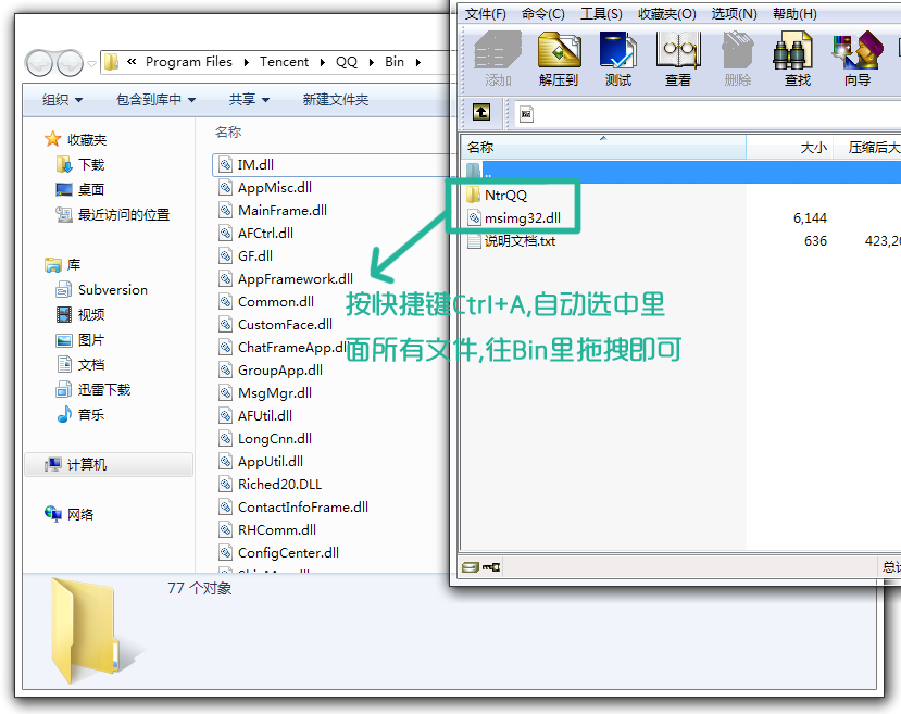首先先把NtrQQ安装包里的NtrQQ文件夹拖入Bin文件夹里