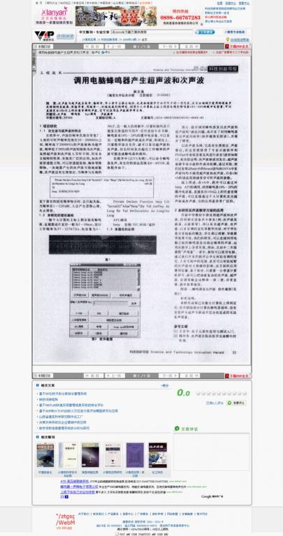 《调用电脑蜂鸣器产生超声波和次声波》——这是09年5月的时候他写的文章。。。OK。。。我百度一下,发现有两个连接貌似可以看到,我点进去了第一个:https://www.cqvip.com/read/read.aspx?id=30609889